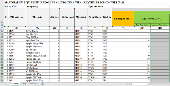 + Module Nhập thông tin phiếu lương hàng loạt theo tháng;